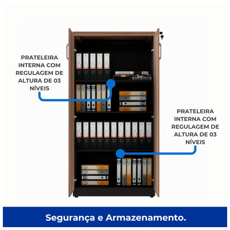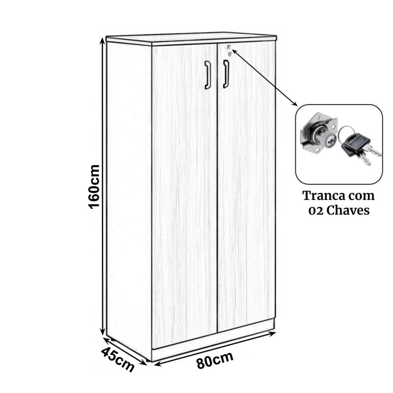 Armário Alto Fechado com 02 Portas – 1,61×0,80×0,45m NOGAL SEVILHA/PRETO – 21414