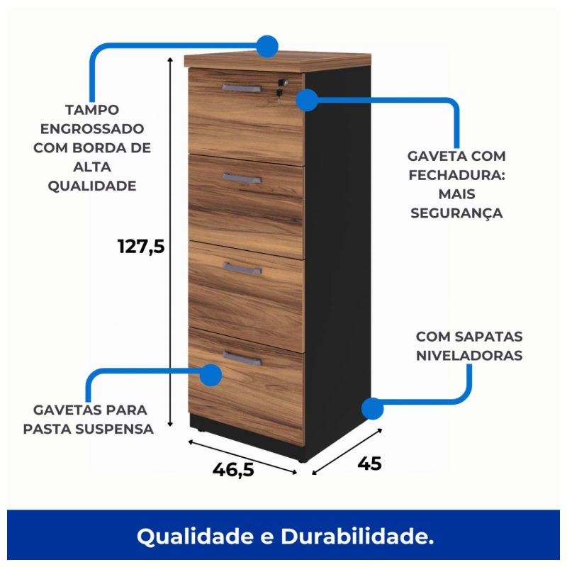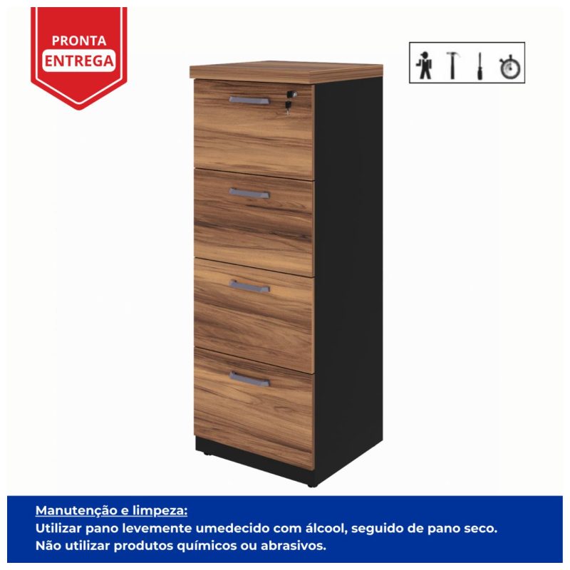 Arquivo 04 Gavetas Pasta Suspensa – 1,28×0,46×0,45m NOGAL SEVILHA/PRETO – 21410
