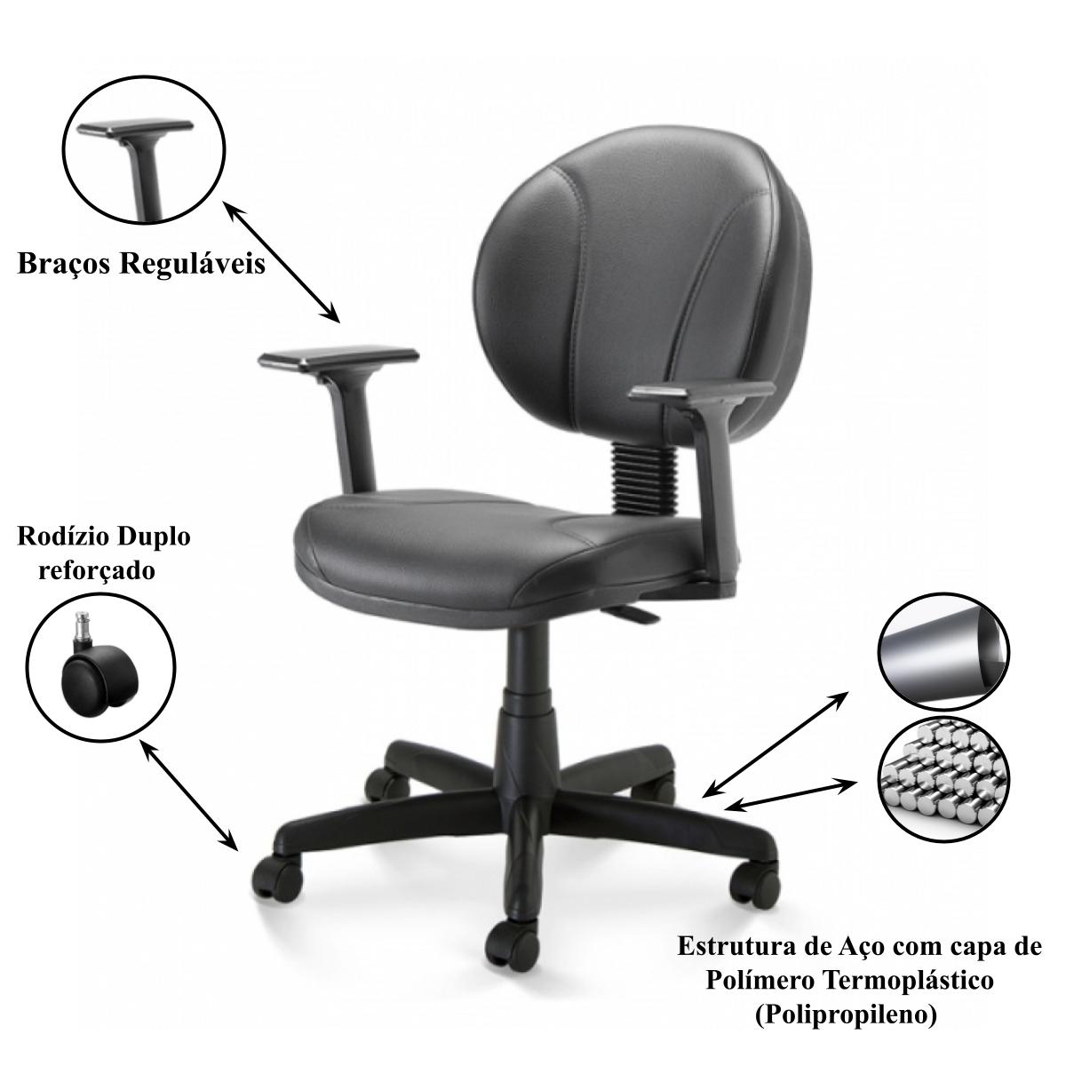 Cadeira de Escritório Executiva PLUS COSTURADA c/ Braços Reguláveis – 32980