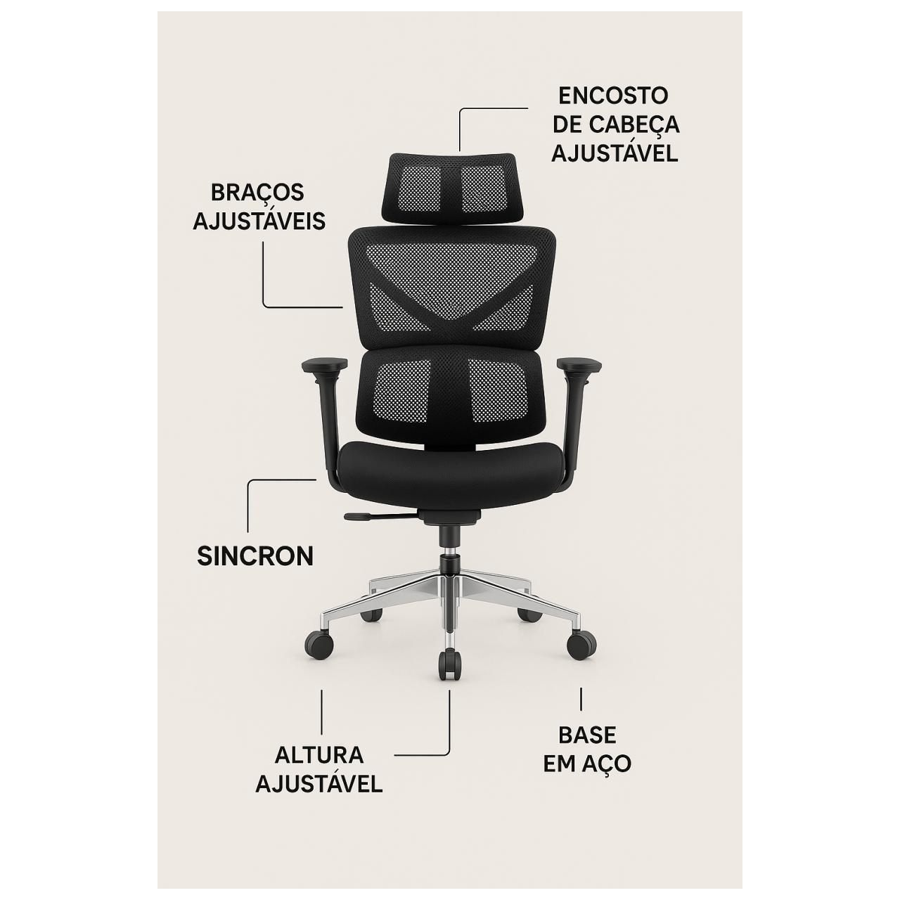 CADEIRA EXECUTIVA ERGONÔMICA – ENCOSTO MESH COM APOIO DE CABEÇA