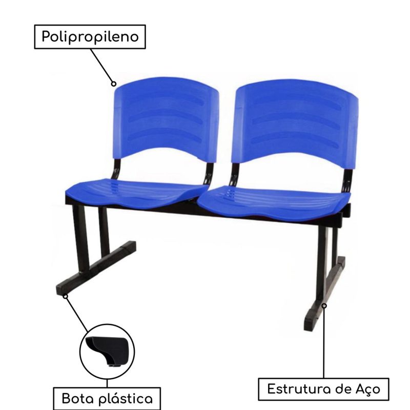 Cadeira Longarina PLÁSTICA 02 Lugares – Cor Azul 33028