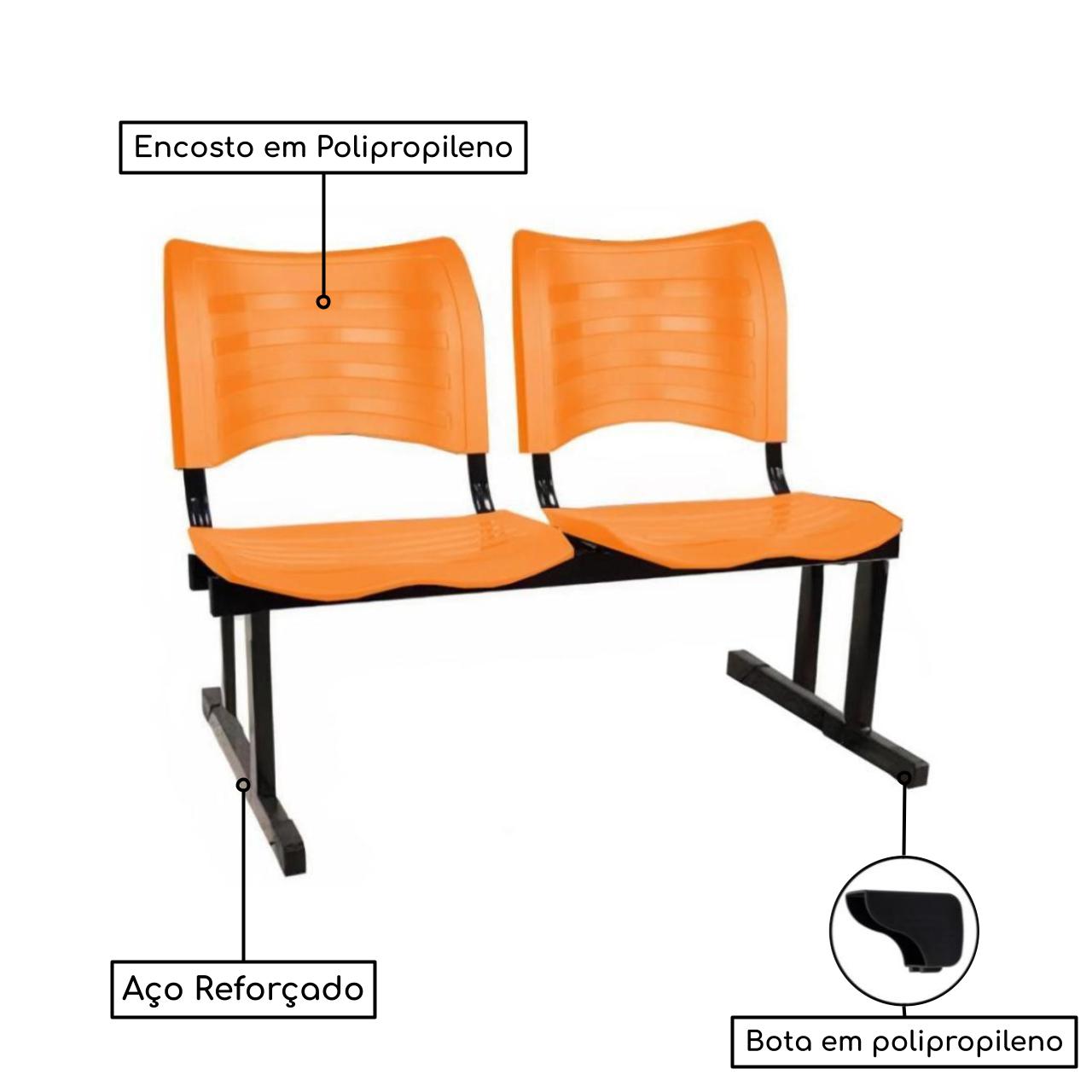 Cadeira Longarina Plástica 02 Lugares – Cor Laranja – PMD – 34208