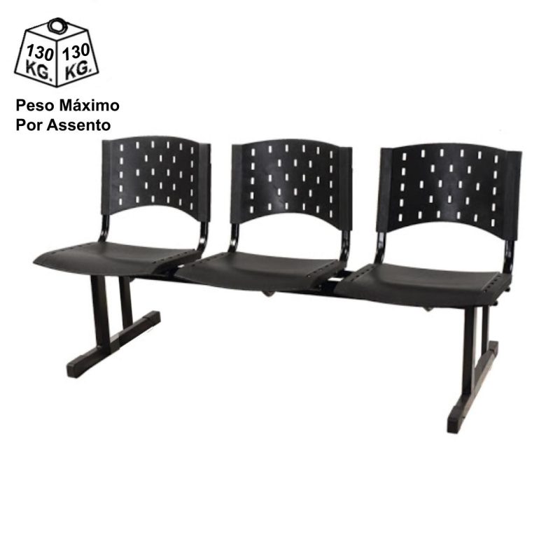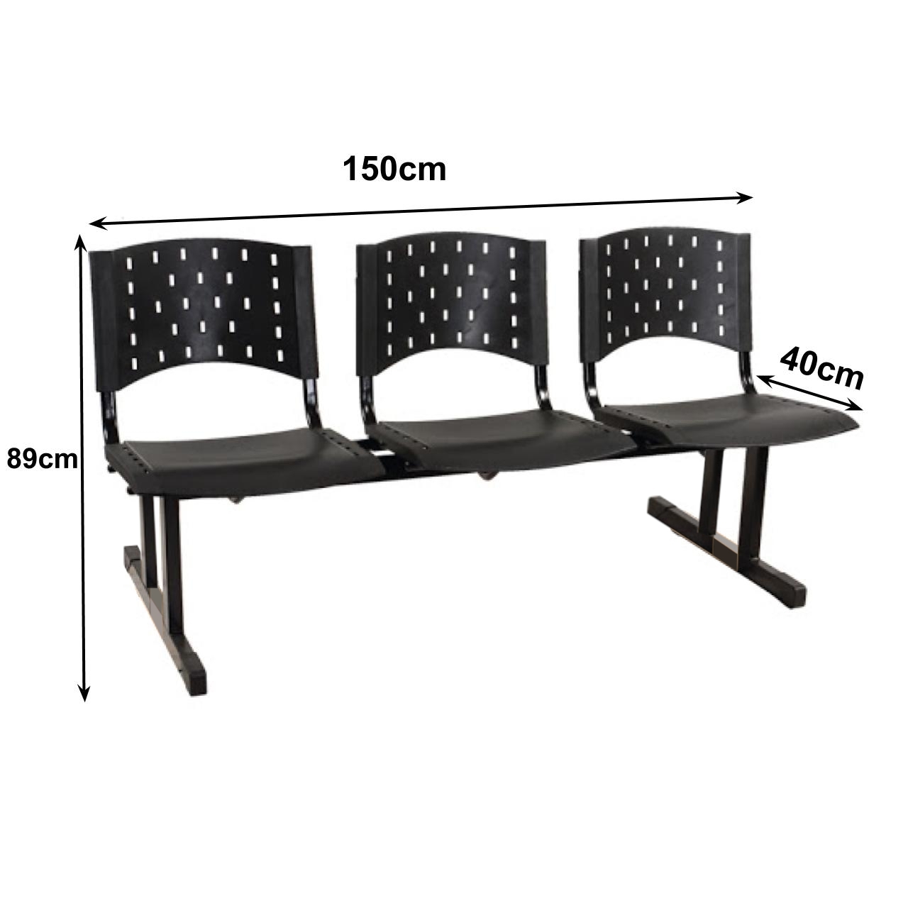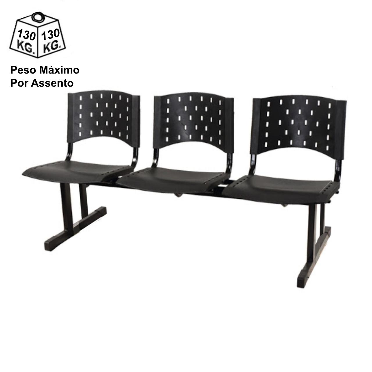 Longarina PLÁSTICA 03 Lugares – Cor PRETA 33002