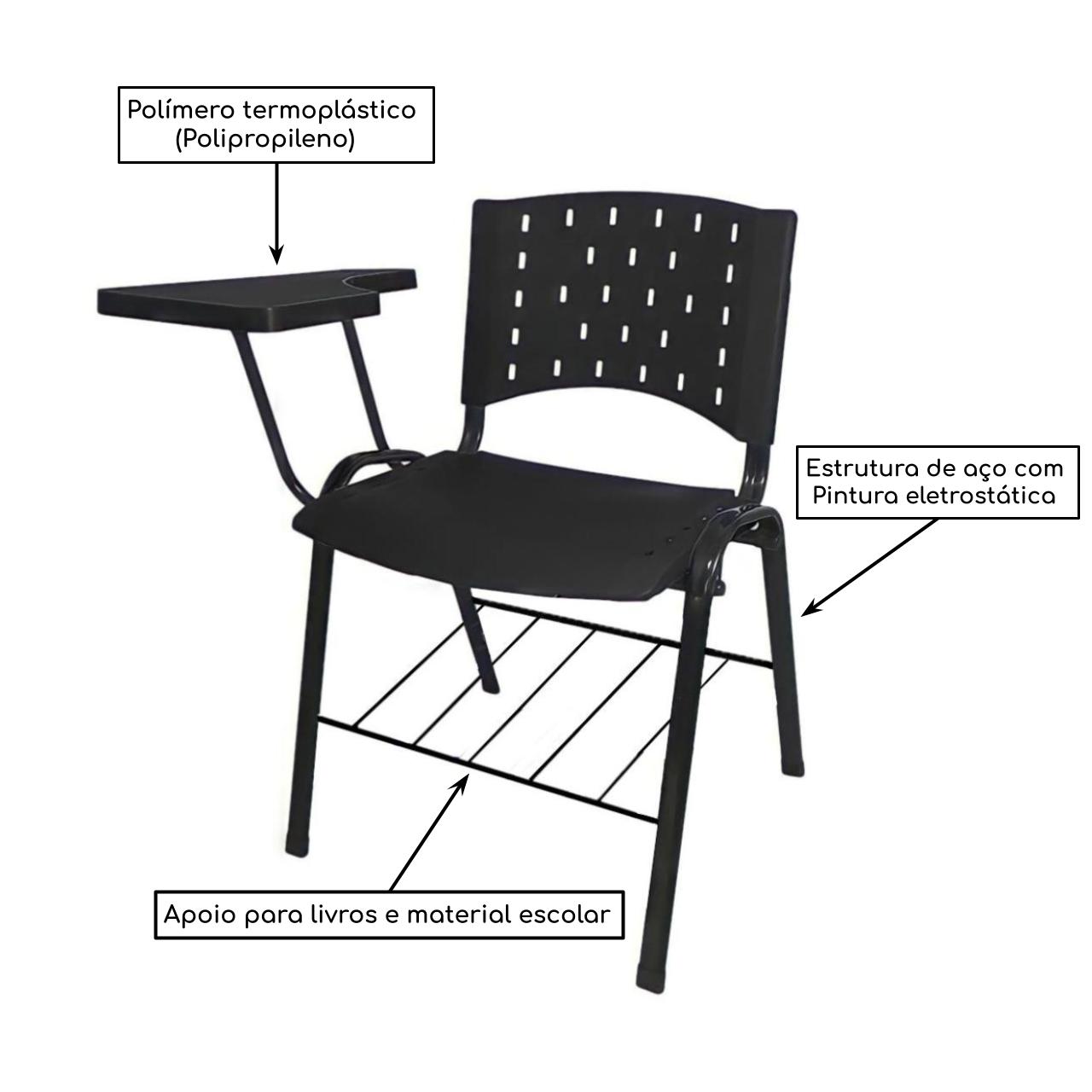 Conteúdo da Embalagem: Cadeira Universitária plástica cor preto