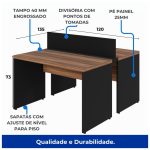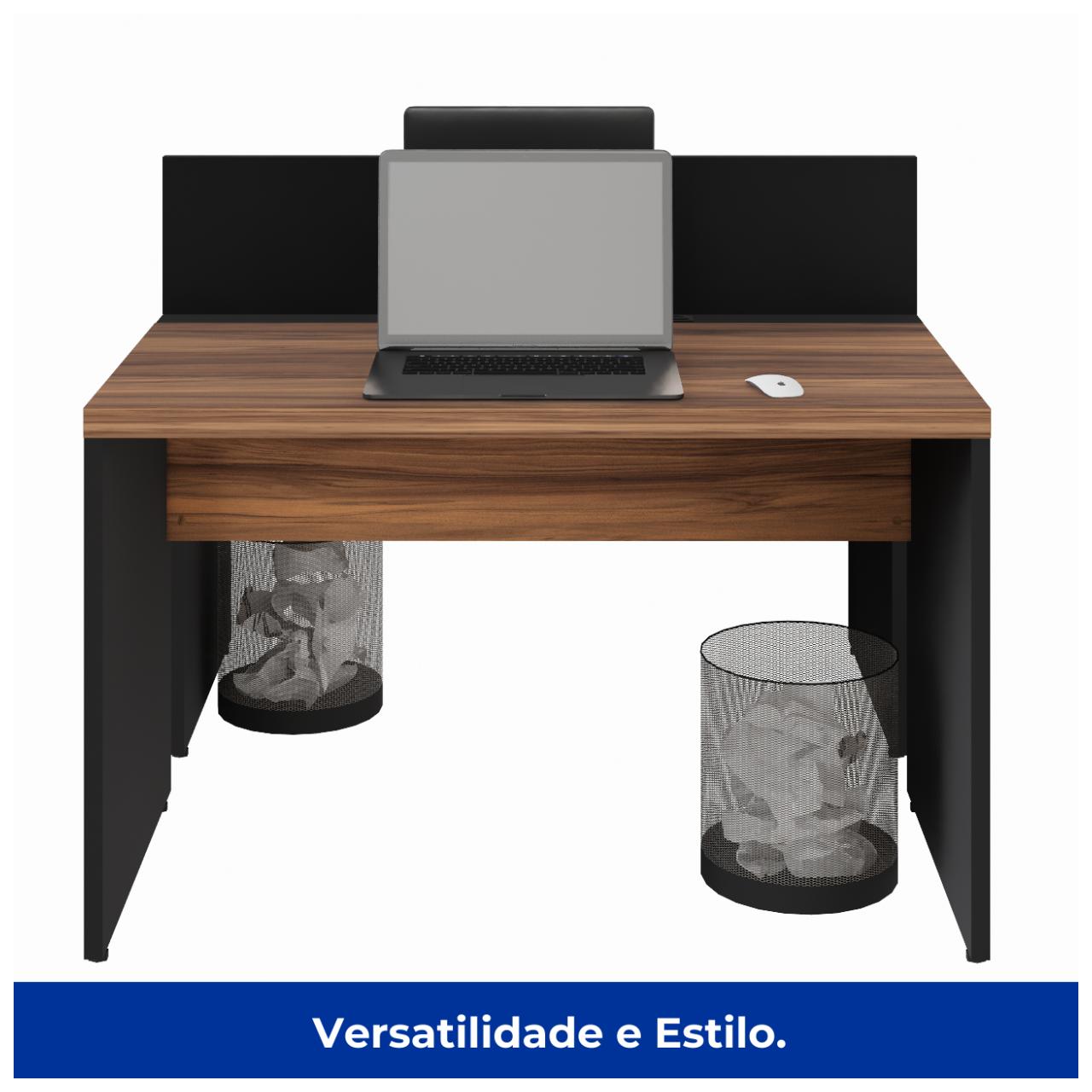 Estação de Trabalho Dupla 1,20×1,35m 02 Lugares s/ Gavetas c/ ponto de tomada Nogal Sevilha – 63085