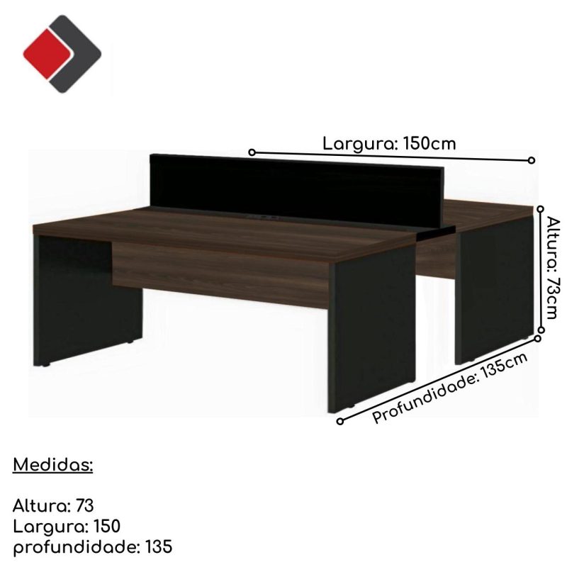 Estação de Trabalho Dupla 1,50×1,35m 02 Lugares c/ Gavetas c/ ponto de tomada MARSALA/PRETO – 63092
