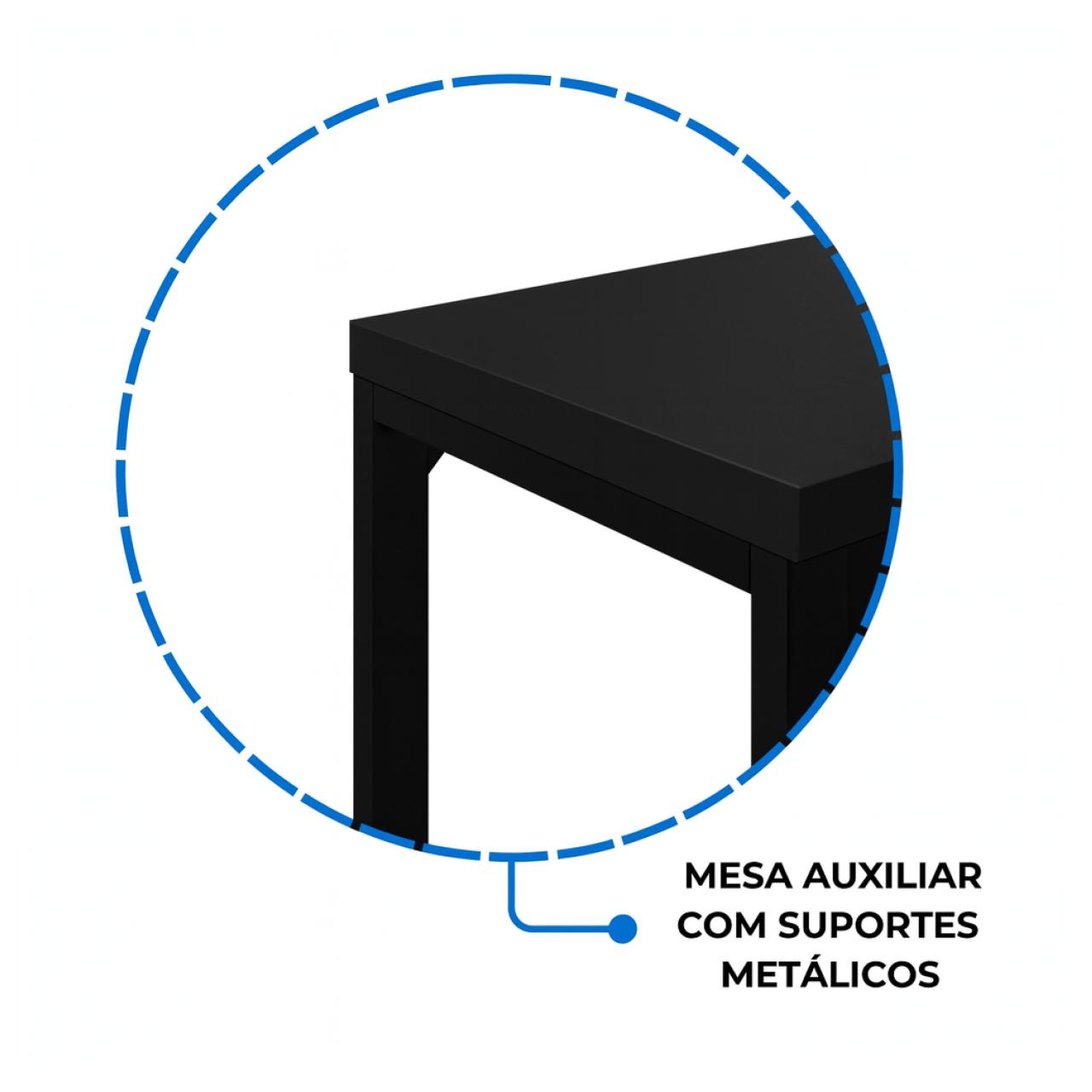Profundidade: 60 cm (mesa principal) / 45 cm (auxiliar)