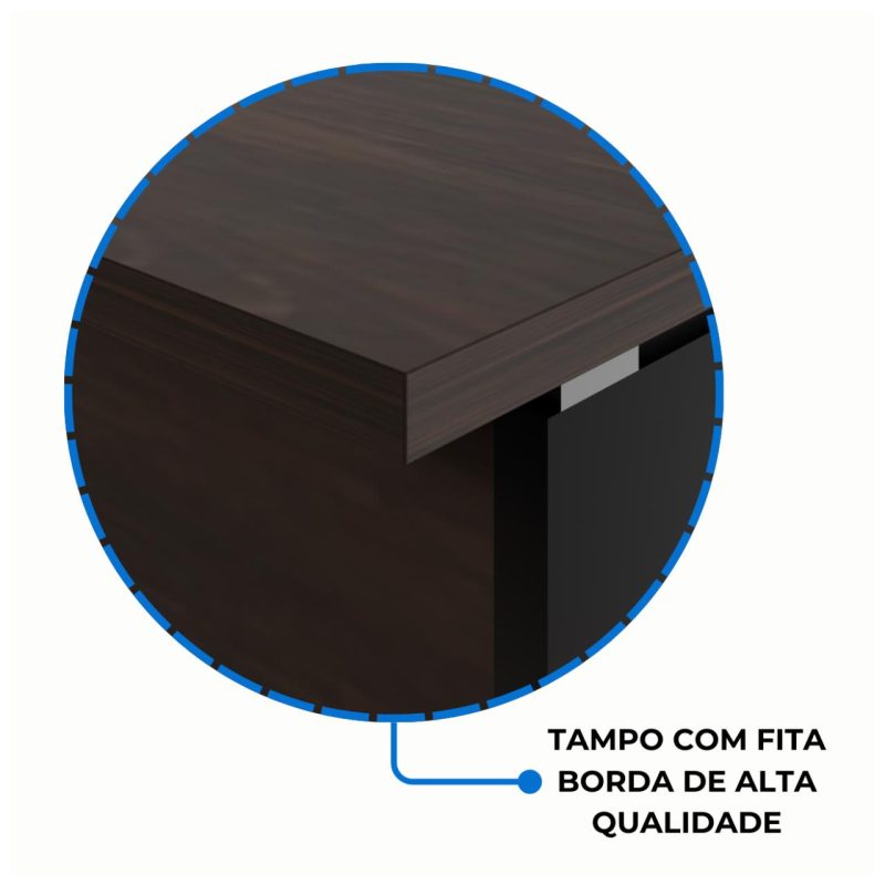 Material do Tampo: MDP de 30mm com Revestimento Melamínico de Baixa Pressão (BP)