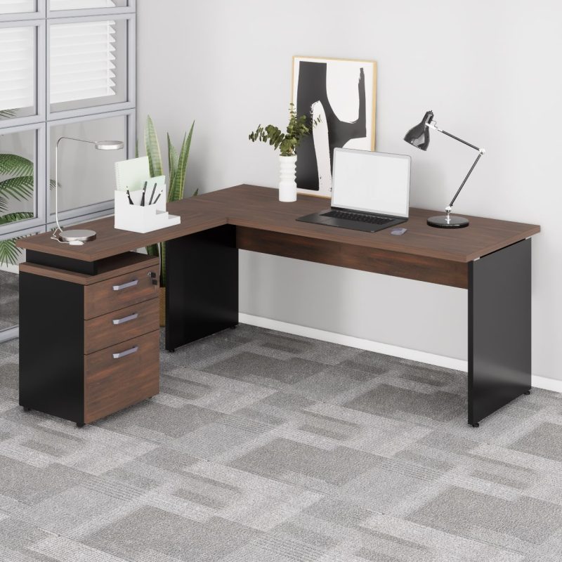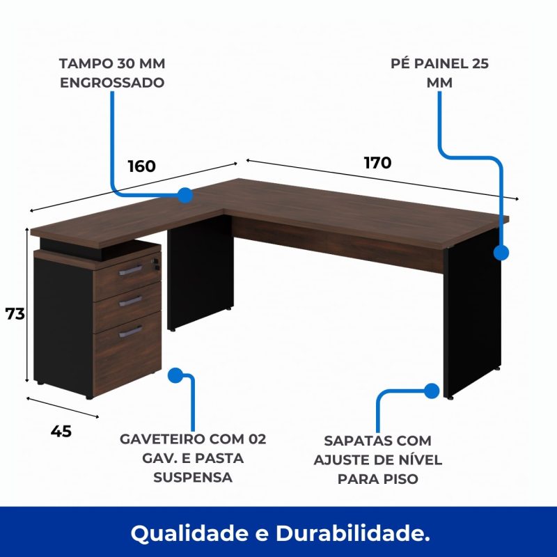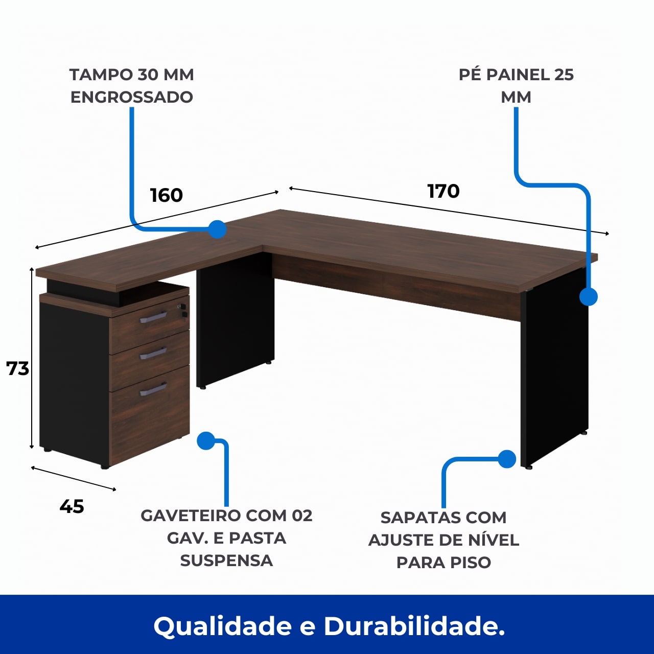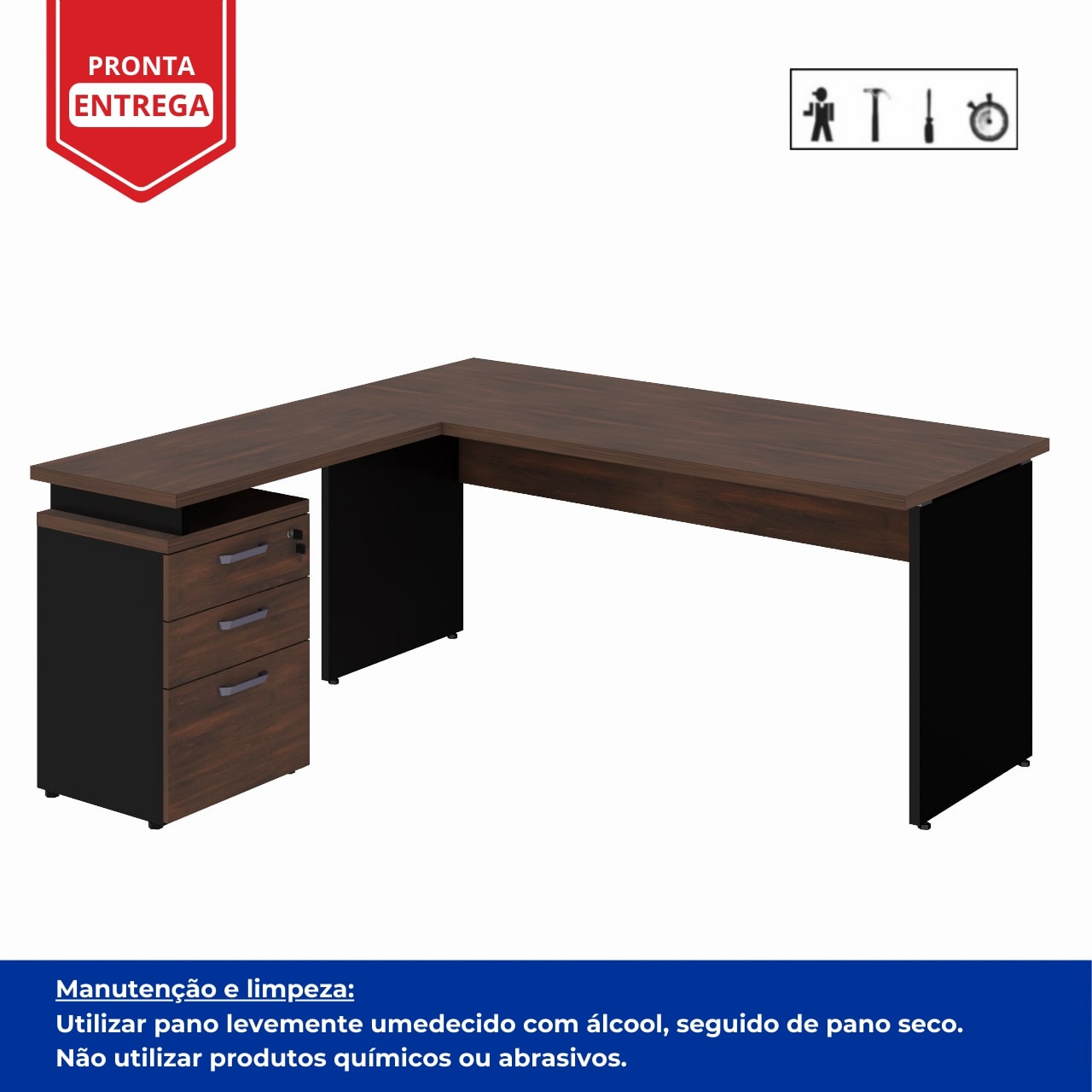 Mesa Escritório em “L” c/ Gaveteiro 1,70m MARSALA/PRETO – 23481
