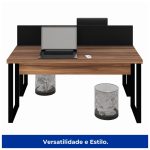 Mesa Estação de Trabalho Dupla 1,50x1,35m 02 Lugares s/ Gavetas c/ ponto de tomada PÉ QUADRO - Cor Nogal Sevilha - 63098